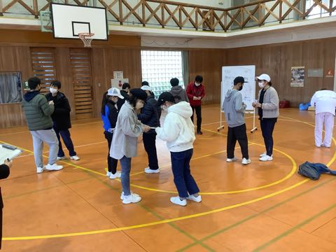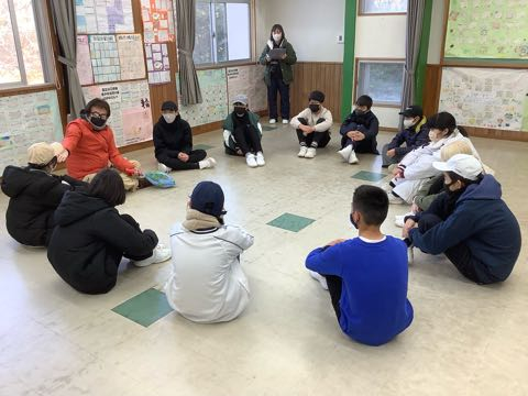 TAP 2日目午前の活動は、TAP(徳地アドベンチャー教育プログラム)です。六つのグループに分かれて、グループの仲間と協力したり競い合ったりする活動をしています。まずは室内の活動をしています。みんな、とっても楽しそう。 « 前の記事 次の記事 »